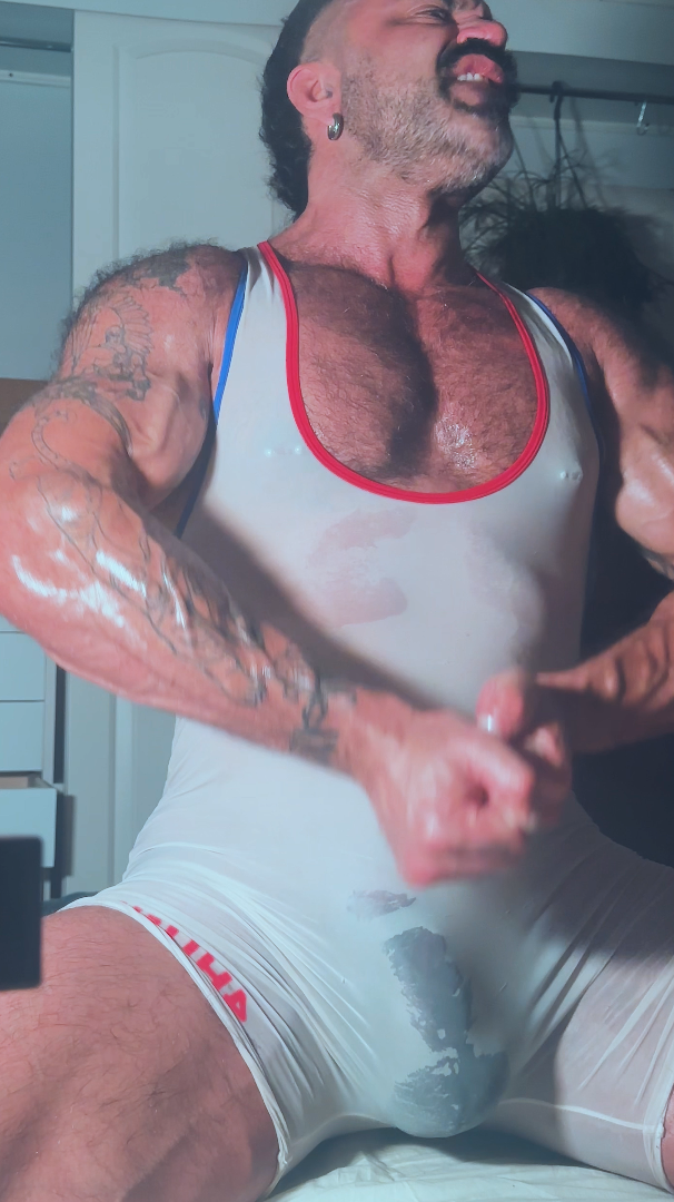 When I get into this wrestling suit my cock instantly goes rock hard and throbs with meat-head testosterone. Add some baby oil and my arty farty lighting and BAM! You have this hot as fuck – Bro Cocky – muscle glorifying – hyper masculine clip! Enjoy.
