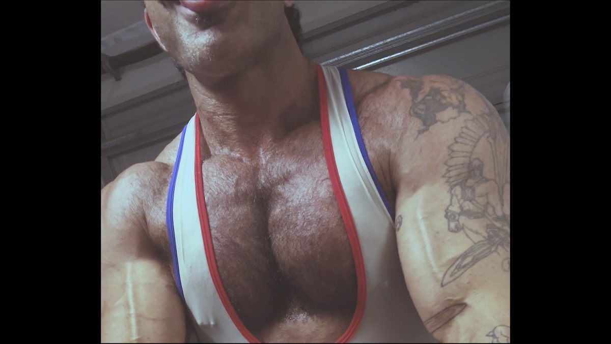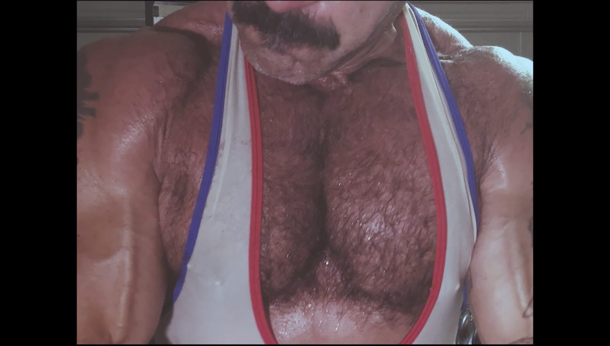 Unlike the other educational(ish) film that dropped at my bodybuilding page this month this one is pure testosterone indulgence. My muscles and my junk are bursting out of my sweat and baby oiled drenched wrestling suit as I pump my furry pecs up in my home. I honestly couldn´t tell you who gets more turned on, me making this or you watching it.