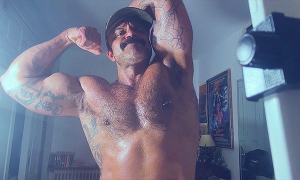 Pumping and flexing massive biceps